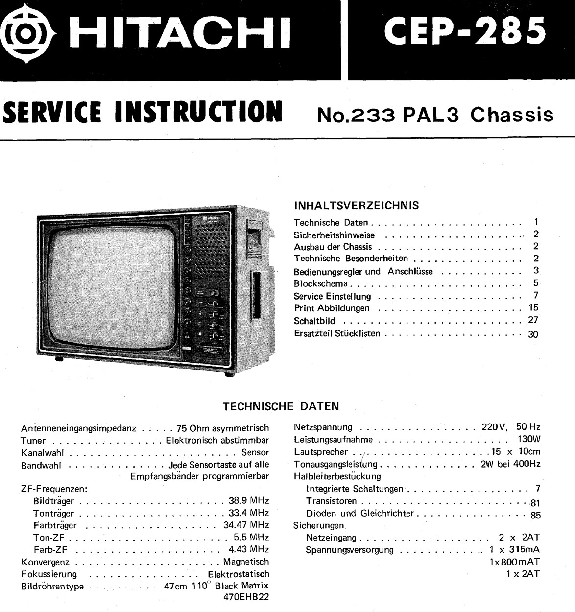 Steckbrief der Kerndaten des HITACHI CEP-285 TV |