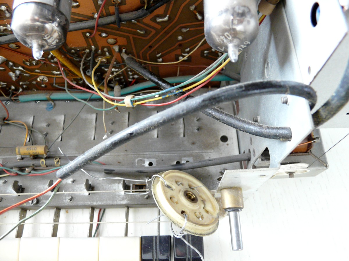 UKW Abstimmung: Was dann nicht passte, das war die UKW Abstimmung, da die Seillänge nicht (mehr) exakt passte. Die Klemmöse wurde folglich um 3-4 mm nach unten hin neu verlötet und die Skala sowie der Bandbeginn wie auch Ende passten auf Anhieb.