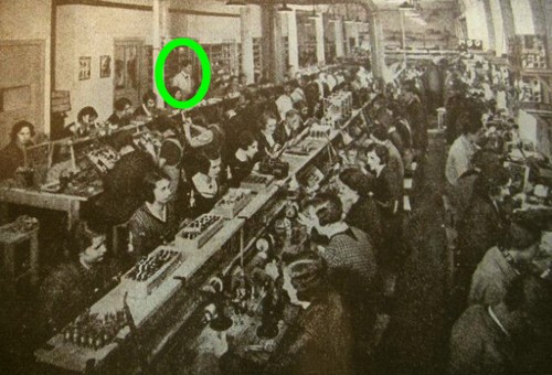 Symbolbild zu dieser Art der Radiofertigungen in Wien um 1935, Obig zu erkennen der „Bandmeister“. Hier am Beispiel der Radio-Minerva Wien Fertigungshalle (C) Aus den Erinnerungen von Carl Sickenberg