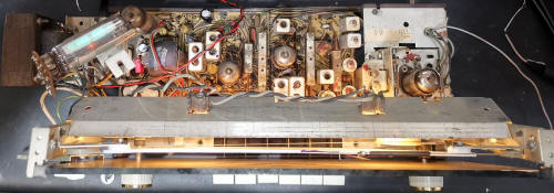 Bild: Tuner von unten gesehen. Unten ist das Eingangsfilter erkennbar.Oben bereits die AM Abstimmung.