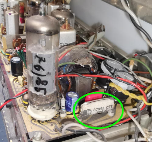 EM84 läßt folglich auf das Vorhandensein eines Selengleichrichters sowie auch von Halbleitergleichrichterdioden für die Demodulation schließen.