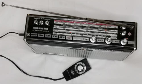 Ein UKW Sender in der Radiostellung - >UKW Hauptabstimmung> sowie die Lautstärke war damit ohne mühevoll die Hand heben zu müssen vom Auto Fahrersitz oder auch dem heimischen Ohrensessel bis hin von bereits im Bett liegenden bis auf rund 5,5 m Abstand bequem einstellbar.
