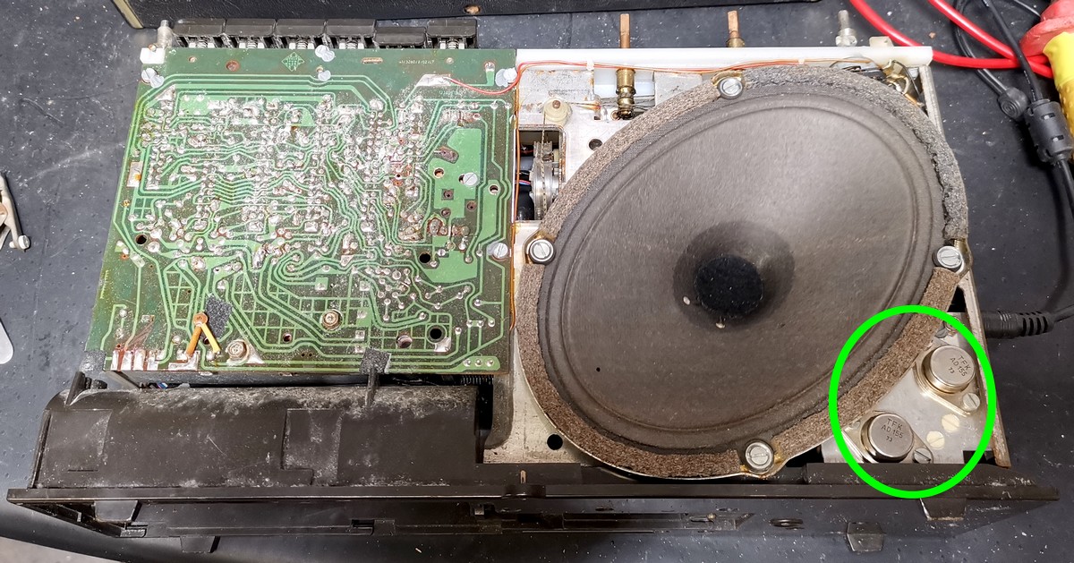 Die Endstufe arbeitet erwartungsgemäß mit den TFK AD155 Transistoren in Komplimentärschaltung noch als "Eisenendstufe" im Ausgang sowie im Treiber bestückt.
