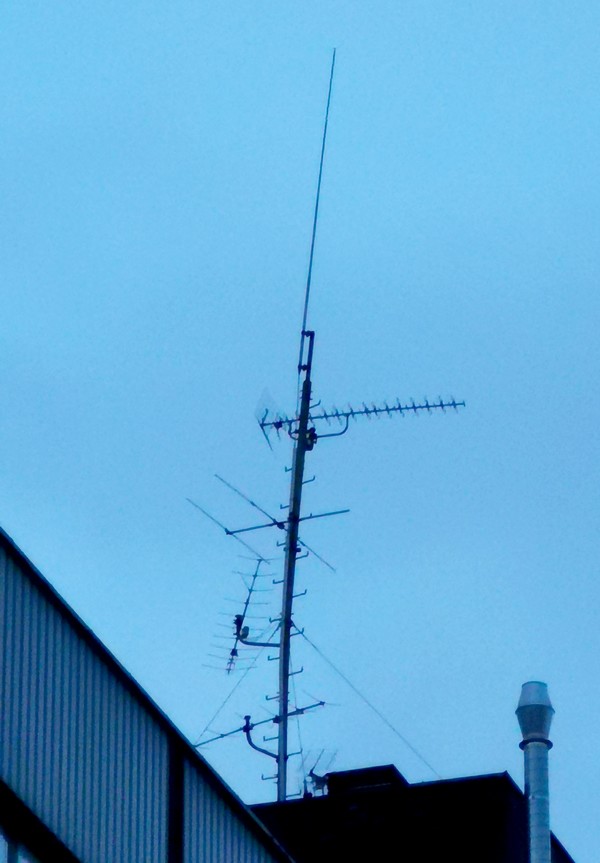 Am Dach des Speisesaals neben der feststehenden SAT Antenne wurde also eine 140 cm Triax? Antenne von einer Wiener Fremdfirma vormontiert, die ich mit einem Kollegen auf richtigen Azimut, Elevation und Deklination zum Abfahren des Clarke-Belts justieren sollte.